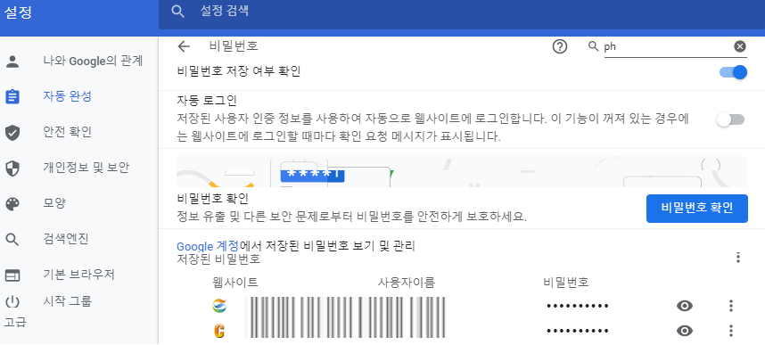 1. 크롬 설정 > 자동완성 > 비밀번호 관리에서 해당 사이트 계정 저장정보 삭제
