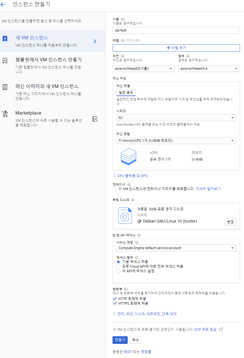 5.wordpress Site 설정 5.1 wordpress install 페이지 접속. ( ip는 Google Cloud Platform 의 외부IP)