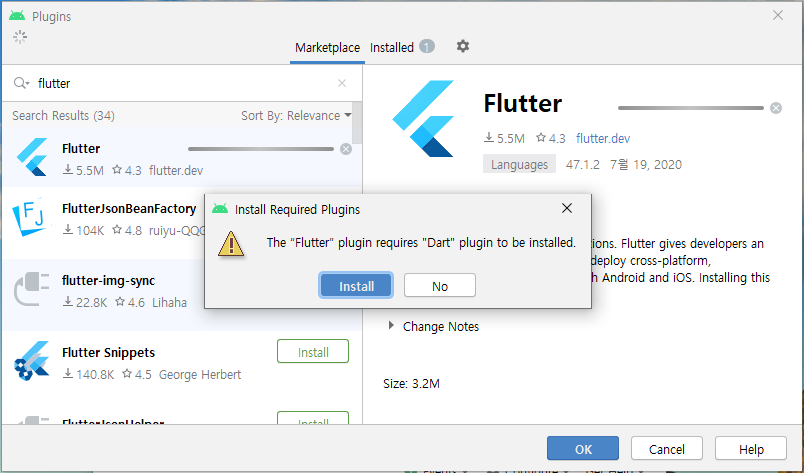 2. Flutter & Dart 안드로이드 플러그인 설치