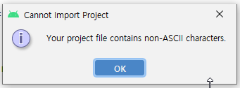 Your project file contains non-ASCII characters. 에러가 발생한다.