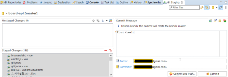 7.2.수정항목 모두 선택, comment 입력후 Commit and Push...