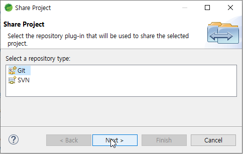 1. 프로젝트 마우스 오른쪽 클릭 후 , Team > Share Project... 선택.