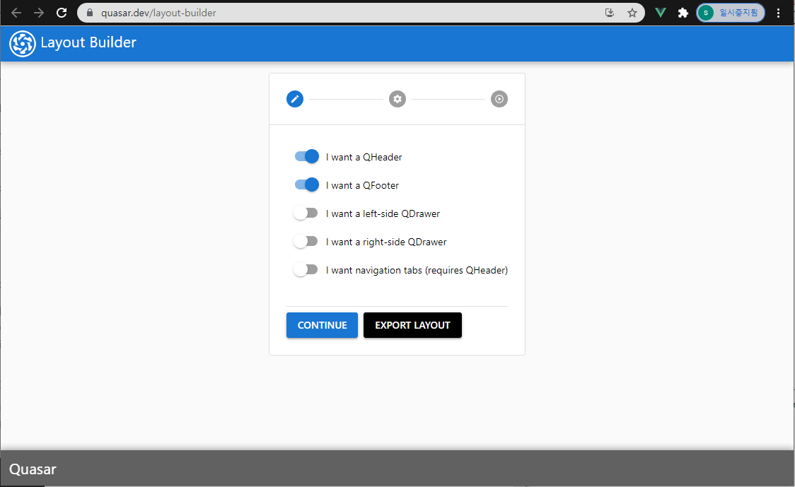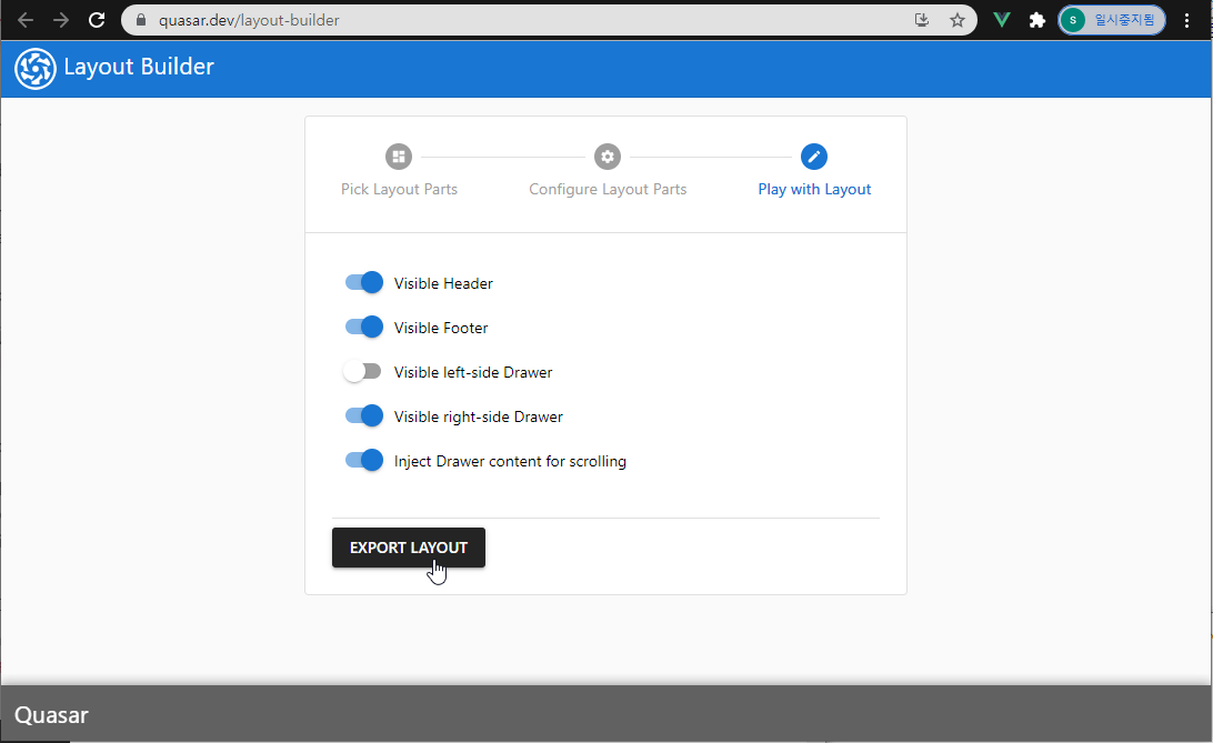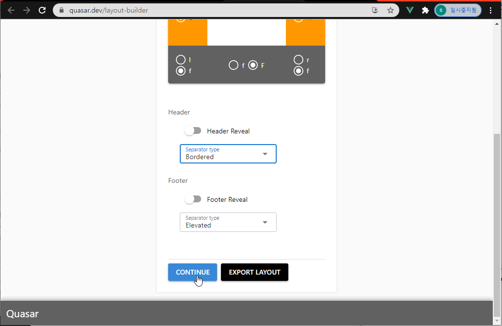 1.1. https://quasar.dev/layout-builder 에 접속 원하는 Layout를 선택합니다.