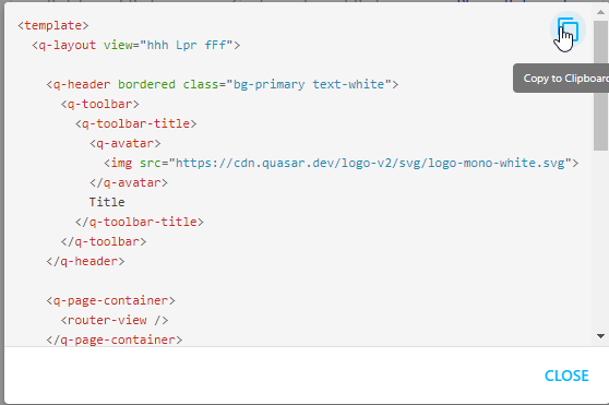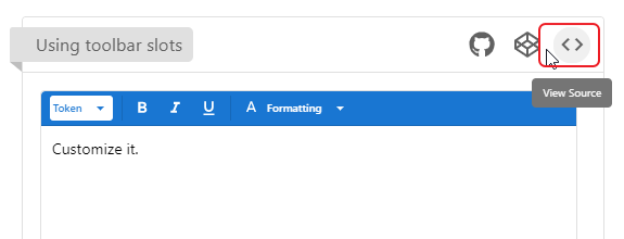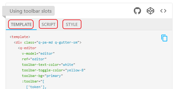 2.2. https://quasar.dev/vue-components/editor 에서 '<>' 를 클릭하고 소스를 확인합니다.