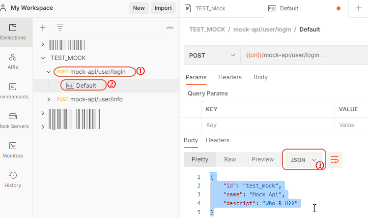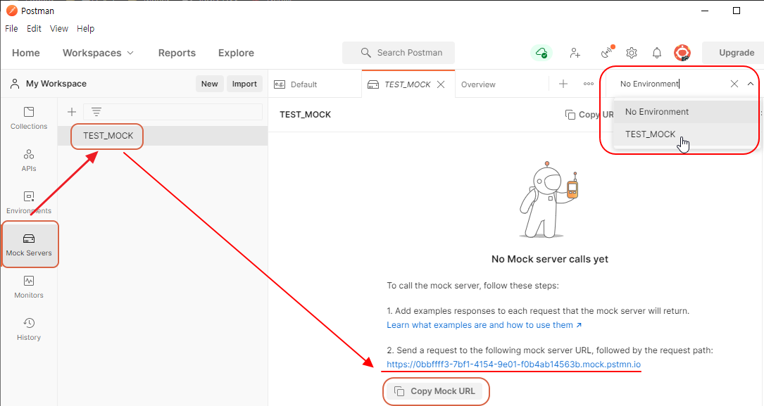 ②. ★우측 상단의 Environment 값을 반듯이 추가한 Mock Sever 로선택해야 합니다.