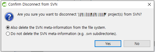 2. SVN revision 정보 삭제여부 선택 후 Yes.
